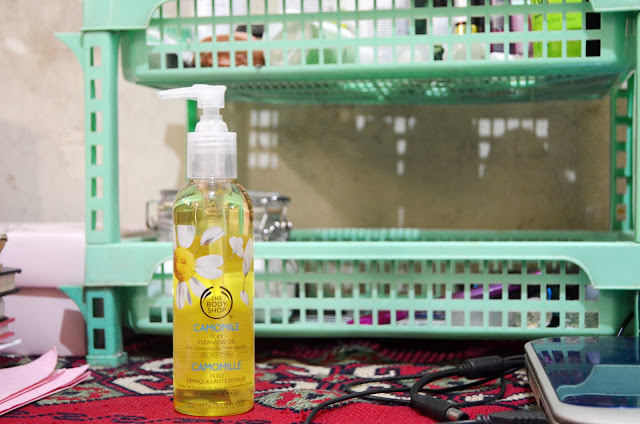 Sampai suatu hari gue menemukan videonya mbak Michelle Phan yang ngajarin basic evening skincare routine. Dia nyaranin pakai pembersih dengan bahan dasar minyak. Lalu dipertemukanlah gue dengan The Body Shop Camomile Silky Cleansing Oil.