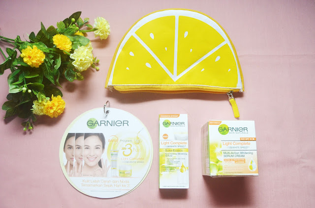 Jadi ceritanya gue ditawarin untuk nyobain dua produk dari rangkaian Garnier Light Complete selama tiga hari untuk mendapatkan kulit cerah sehat bersinar yeaaa. Awalnya gue takut nyoba-nyoba skincare karena kulit gue ini mudah sekali berjerawat, takut tahu-tahu nggak cocok kan berabee huhu. Tapi karena produk-produknya meng-claim bahwa bisa menyamarkan noda hitam di wajah yang mana wajah gue penuh sekali dengan bekas jerawat, gue jadi tergiur untuk mencobanya.