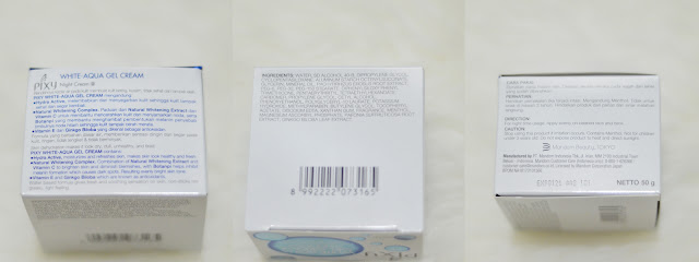 Konsistensinya juga gel, hampir seperti air. Teksturnya lebih ringan ketimbang day cream-nya. Warnanya juga putih susu tapi terlihat sedikit transparan bila produknya diambil. Produknya mudah dibaurkan dan terasa seperti air. Ada sensasi sejuk juga di kulit seperti day cream-nya. Aroma alkoholnya terasa banget ketika dihirup langsung di jar, akan tetapi ketika di-apply ke wajah aroma alkoholnya nggak begitu terasa. Wanginya pun seperti wangi floral tetapi nggak terlalu terasa, kok.