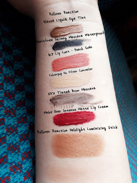Nah foto di atas ini gue mengaplikasikan beberapa produk makeup di tangan gue (iya itu tangan percaya aja ya). Di sana ada Innisfree Skinny Waterproof Mascara yang sebenarnya mudah sekali dihapus pakai cleansing oil yang biasa gue pakai, dan ada BLP Lip Coat yang menurut gue agak susah dihapusnya jadi harus pakai makeup remover yang oil based. Sisanya produk yang gampang dihapus pakai micellar water sekalipun.