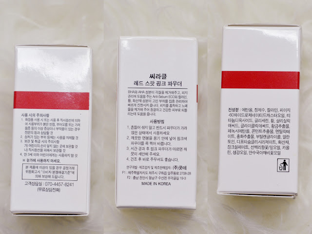 Sama seperti serumnya, kemasan Red Spot Pink Powder ini juga berwarna putih dengan aksen berwarna merah dan tulisan berwarna hitam. Lagi-lagi sebagian besar tulisannya menggunakan aksara Korea, tapi tenang gampang kok terjemahinnya pakai aplikasi Google Translate haha (sungguh ini bukan promosi wkwk). Botolnya sendiri bening sehingga kita bisa melihat isi produknya. Ukurannya 16ml, mini banget tapi karena ini spot treatment pastinya digunakan sedikit-sedikit juga cukup, ya. Bagian tutupnya ulir biasa dengan segel plastik.