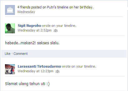Tidak ada hadiah, tapi ucapan dan doa-doa dari teman-temanku sudah lebih dari cukup hihi :)