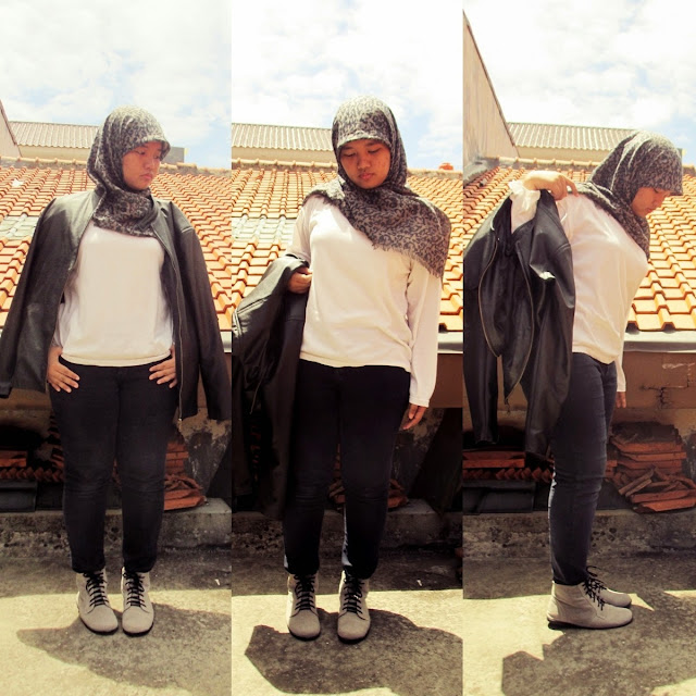 And I tried to mix and match my bro's leather jacket. Is it looks cool on me? :)
