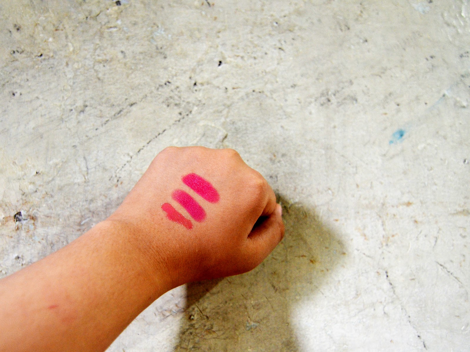 Sebenernya agak galau waktu itu maunya warna apa. Gue kepengen warna merah jambu yang kalem-kalem gitudeh. Mba-mbanya baik banget btw, walau di display testernya gak lengkap, dia ngebolehin kita swatch warna yang kita mau. Dia nyaranin nomor 001 [King of Pink], 002 [Pink Alcatraz] dan 007 [Think Pink]. Ketiganya warnanya cantik-cantiiiik banget. Untuk nomor 001 kalo gak salah warnanya pink mudah cerah gitu, kalo yang 007 lebih ke warm pink, jadi agak gelap gitu tapi bikin muka cerah. Gue milih yang nomor 002 soalnya pinknya medium, jadi aman lah yaaa buat bibir hehehe.