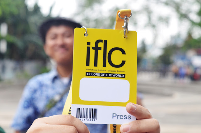 Nah udah bertemu semuanya, tiba-tiba aja kak Bulan ngasih gue name tag khusus media/jurnalis!!! Ahahahahaha gilaaa berasa keren banget gue. Seakan-akan beneran dari media yang mau ngeliput. Di situ gue sebagai media dari Bengsas [bengkelsastra.net] huehuehuehue. Apa keuntungannya? GUE BEBAS FOTO-FOTO SANA SINI, MASUP-MASUP PINTU MANAPUN [BAHKAN VIP] TANPA NGANTRI, MUTER-MUTER EVENT SESUKA HATI NYIAHAHHAA. BUT konsekuensinya adalah, gue ga dapet tempat duduk! Hehehehe.