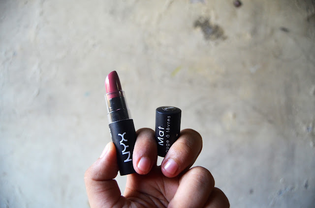 Nah untuk gincu ini ternyata warnanya juga agak keunguan, warna bibir pada umumnya lah. Teksturnya creamy dan aromanya aneh menurut gue. Aroma gincu yang biasa gue temui itu biasanya aroma vanila gitu, tapi ini apa yah... ya bau gincu lah. Warnanya cukup pigmented, tapi nggak tahan lama di gue. Ga tau juga ya tapinya, soalnya ada juga yang mengulas katanya gincu ini tahan lama, tapi dia punyanya warna yang bold gitu sih. Ya entahlah. Mungkin gue akan nyoba warna lain. Oh iya minusnya juga ini di kualitas kemasan yang menurut gue cheesy, ya, untuk ukuran brand luar negeri dan harganya segituh. Plastik doangan gitu. Emang sih NYX di luaran tuh termasuk produk drugstore. Desainnya mahh bagus menurut akuhh. Kualitasnya aja yang kurang. Tapiii teteplah aku sukak buat pemakaian sehari-hari. Temen sih ada yang bilang muka gue jadi pucet kalo pake ini hahahah bodo ah.