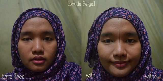 Dia gak begitu menutupi bekas jerawat di muka gue. Tapi engga apa-apa, sih, hasilnya jadi lebih ringan dan natural. Swatch di atas gak gue tambahin bedak, btw.