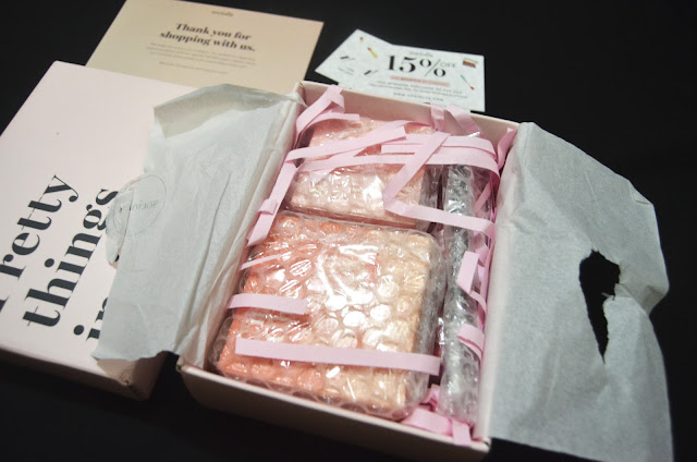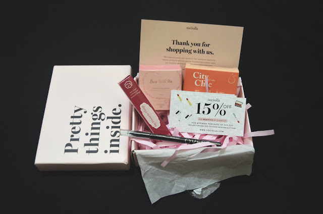 Terus pesanan kita dibungkus rapi dan ada sticker bening Sociolla untuk ngunci barang yang dipesan. Di dalemnya produk-produk dibungkus bubble wrap dan di bawah produknya ada kertas-kertas pink panjang-panjang gitu bikin produk semakin aman selama di dalam kotak yaayyy. Bukanya juga ga susah, ga nyiksaaa hahaha.