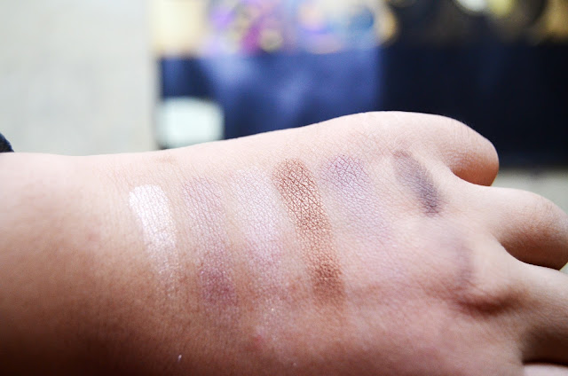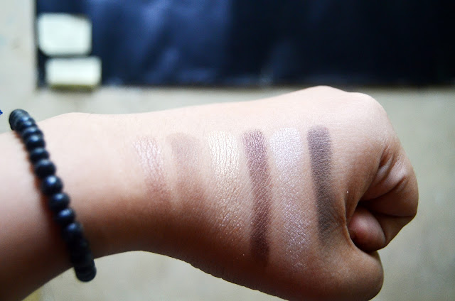 Varian warnanya ada yang matte dan shimmer, plus dua warna glitter. Inget, ya, shimmer dan glitter beda. Setahu gue, glitter itu biasanya suka jatoh-jatoh gitu loh titik-titik bling-blingnya wkwkwk. Jadii menurut gue sih, palette ini nggak hanya bisa ngasih kita look yang natural, tapi bisa juga look glamor karena adanya warna emas dan si glitter ini yang memberi kesan mewah. Mantap lah! Sepakeet!!