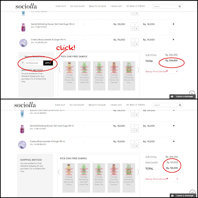 Nah buat kalian yang pengen nabung dulu buat ngumpulin poin, bisa nih pake voucher code PUTRIAZKA50 dulu. Langsung aja ketik kode tadi di kotak voucher code dan belanjaan kalian langsung berkurang IDR 50.000 dengan minimal belanja IDR 200.000 yaayyy :D