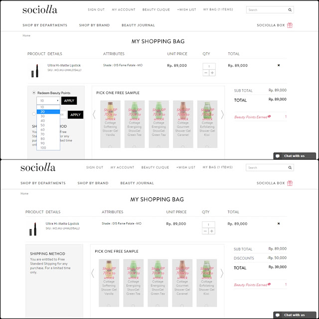 Tapiii, kamu hanya bisa menggunakan maksimal 100 poin dalam satu kali belanja. Jadi ya dalam sekali belanja itu ga bisa pakai lebih dari 100. Tapi lumayan bangeeet gilzzz. 100 poin itu bernilai IDR 250.000. Asik gak? Asik gak? Oh iyaaa penggunaan beauty points nggak bisa digabung sama promo code, yaa :)