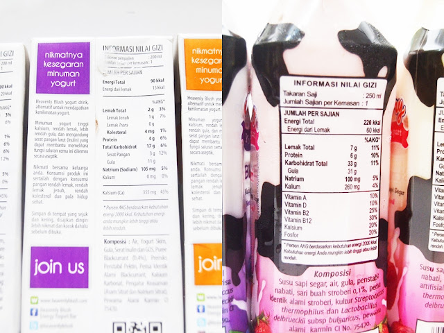 Berbeda dengan Heavenly Blush Yogurt yang memiliki tekstur lebih cair dibandingkan yogurtnya Cimory. Jadi ga gampang bikin eneg juga. Bisa langsung seruput sampai habis tanpa harus "beristirahat" ketika meminumnya. Rasa asam dan manisnya juga pas, gak terlalu asam dan gak terlalu manis. sesuai dengan selera gue yang gak terlalu suka sama rasa yang terlalu manis. Heavenly Blush Yogurt juga hi-calcium yang cocok banget bagi kalian yang aktif supaya tulang kalian bisa tetap kuat selama menjalani aktivitas. Produk ini juga rendah gula dan rendah lemak, cocok banget deeeh buat para pejuang tubuh ideal dan bagi teman-teman yang mau menjaga berat badannya agar tetap ideal. Mengandung serat pangan prebiotik, yang dapat menjaga kesehatan pencernaan dan dapat membantu menurunkan kolesterol. Terus produk ini juga bisa lebih tahan lama walau tanpa disimpan di dalam kulkas, karena dibuat dengan proses aseptis dan UHT jadi gak perlu takut cepat basi deeh. Bisa tahan lama walau tanpa bahan pengawet :D