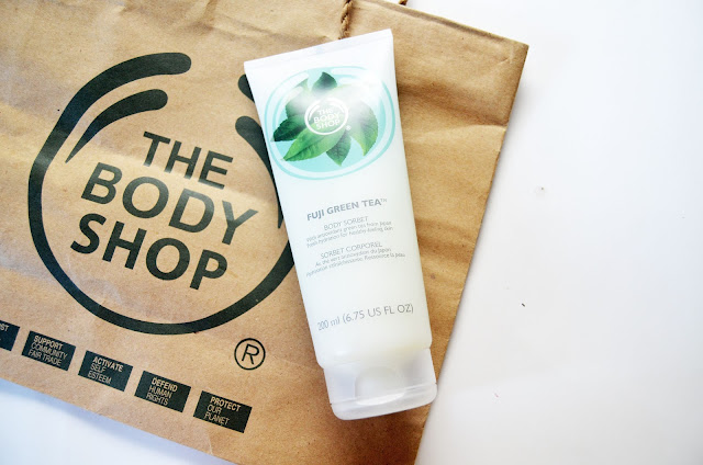 Gue udah ngincer varian Fuji Green Tea dari parfum, sabun, body butter, dan body scrub-nya. Akibat dari saran mas-mas TBS di sana yang super baik, ramah, dan pengertian, akhirnya gue memilih beli body sorbet-nya. Body sorbet sama aja sih kayak body lotion tapi dia ya bentuknya kayak apa ya.. kayak fla di puding tapi lebih agak bening gitu. Ah bingung jelasinnya wkwk. Pokoknya dia lebih ringan dari body butter atopun body lotion, dan lebih thick dari gel. Kalo diusap di kulit rasanya sejuk gitu, kayak pake gel lotion. Wanginya seger banget, suka! Lumayan, lho, diskon 50% gelaa. Langsung deh kucomot produk ini karena emang gue nggak punya pelembap buat kulit badan, sih, hahahah. Tapi gara-gara ini gue jadi kepengen nyobain yang lain-lainnya. Naksir juga sama varian Coconut, wanginya itu manis-manis gitu suka banget. Kemaren nyoba nyiumin lip butter sama parfumnya. Nyesel banget kemaren nggak beli parfumnya akkkhhh.