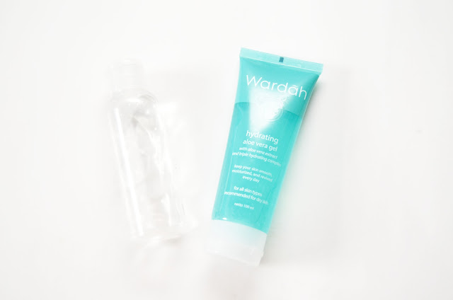 Sehari-hari gue pakai pelembap yang beda untuk pagi dan malam hari. Tapi supaya lebih praktis, gue membawa pelembap yang bisa dipakai di pagi dan malam hari. Favorit gue saat ini dari Wardah yang Aloe Vera Gel karena ringan banget di wajah. Buat jaga-jaga juga karena produk ini bisa menenangkan wajah setelah terpapar sinar matahari. Gue heran sih dulu sempet ngiranya produk ini bikin wajah gue makin jerawatan. Ternyata enggak cuuuyy emang guenya aja yang jorok bahhahaha. Pokoknya aloe vera gel itu banyak manfaatnya, lah :D