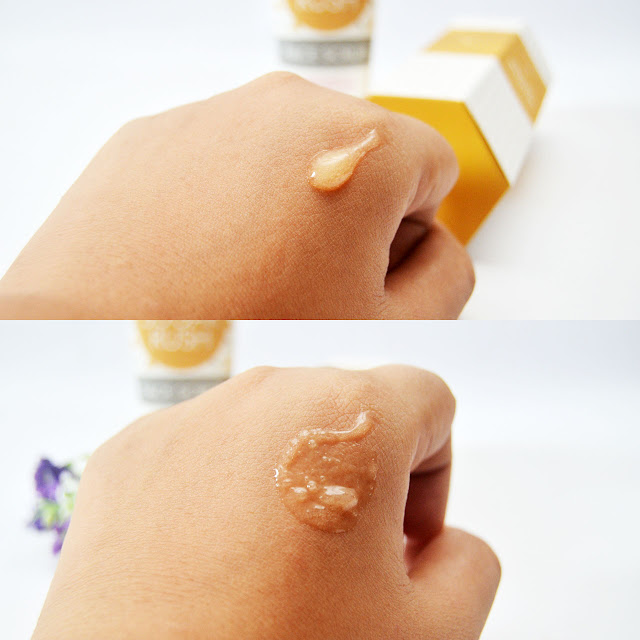 Pas pertama kali box Sociolla datang membawa Sugar Rush Face Scrub ini, yang pertama kali tercium adalah aroma gula yang ada di dalam produk ini. Wanginya, gaes, gue suka banget! Wangi gula, kue, manis-manis gitu. Pas ngeluarin produknya, gue pun cukup kaget ya ternyata ini gula beneran hahaha! Cairan produknya warna karamel dan cukup padat karena sarat akan gula. Gue pernah icip dikit ini produk di lidah gue, dan rasanya manis hahaha. Tapi tetep nggak enak dimakan karena ada rasa sabun-sabunnya gitu :D