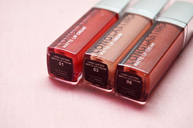 LT Pro Long Lasting Matte Lip Cream memiliki 8 varian warna. Warna bold-nya, gue bisa bilang sih hanya dua. Sisanya warna nude dan pink dengan undertone yang berbeda-beda. Cocok sama orang-orang Indonesia yang suka dengan tampilan makeup yang natural. Tapi tentu tidak bagi gue yang senengnya ama yang bold-bold untuk dikoleksi hahaha. Gue sendiri punya yang nomor 01, 03, dan 08; yaitu warna merah, merah kecoklatan, dan nude.