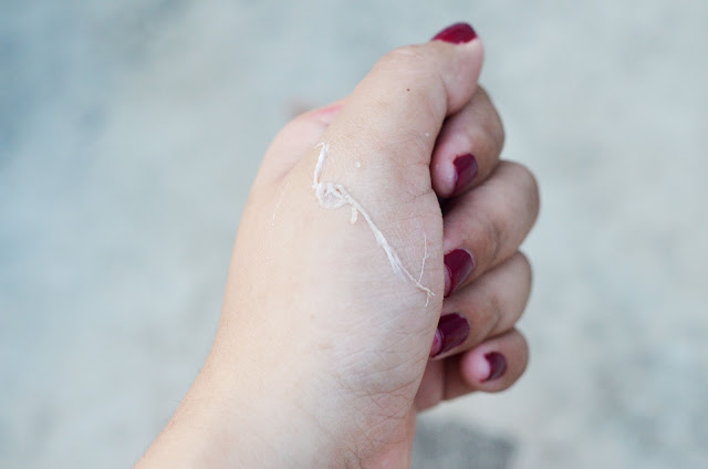 Cairannya cukup kental seperti peel off mask pada umumnya. Sempat baca review juga katanya ini pedih banget kalau ditaro di deket mata, tapi di gue sih nggak bikin pedih ya. Wanginya aja paling yang cukup bikin pedih. Gue sampe napas pake mulut dulu sampe aroma nyengat-nya berkurang. Tapi tenang, wanginya cepat hilang kok.