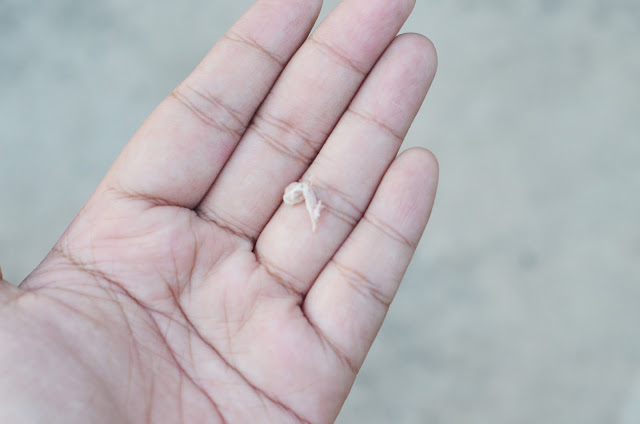Cara penggunaannya, diusapkan ke seluruh wajah yang kering setelah dibersihkan. Dipijat-pijat wajahnya selama 3-5 menit sampai sel kulit mati terangkat. Jangan ke area mata ya. Gue mengira bakalan keluar banyak daki gitu huahahha ternyata nggak juga. Butirannya warna putih dan rasanya bukan kayak daki, tapi lebih seperti kertas yang dibasahin terus sampe bentuknya butiran gitu. Entah apa karena gue akhir-akhir ini lagi rutin-rutinnya eksfoliasi jadinya nggak begitu banyak sel kulit mati yang terangkat. Kemudian dibilas pakai air hangat, deh.