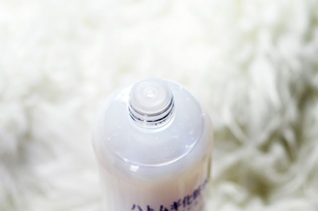 Dari segi kemasan menurut gue produk ini desainnya cukup simpel. Terbuat dari botol plastik biasa yang bening dengan nuansa berwarna biru pada tutup dan tulisan-tulisan yang ada di botolnya. Ada gambar tanaman juga di situ yang gue rasa merupakan gambar dari tanaman hatomugi. Tutupnya kecil bentukan ulir biasa dengan lubang yang kecil juga, jadi kalau mau mengaplikasikan produk ini langsung pakai tangan nggak perlu takut produk bakal kebanyakan keluar dari botolnya. Botolnya cukup besar, yaitu berisi 500 ml. Nggak travel friendly, jadi teman-teman bisa membeli botol kecil bila perlu membawa produk ini di dalam tas. Setau gue sih pas beli produk ini nggak dapet botol kecil, ya. Tapi di sini gue dapat botol spray kecil buat dipakai sebagai face mist.