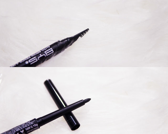 Dari kemasannya ini mirip-mirip auto eyebrow pencil pada umumnya, ya. Bentukannya diputar gitu dan ada sikat di ujung satunya. Sikatnya terbuat dari karet berukuran kecil dan cukup lentur. Nah bagian sikatnya itu bisa dicopot buat ngeraut pensilnya. Gue nggak sempet fotoin karena gue baru sadarnya pas tulisan ini lagi ditulis hahahah.