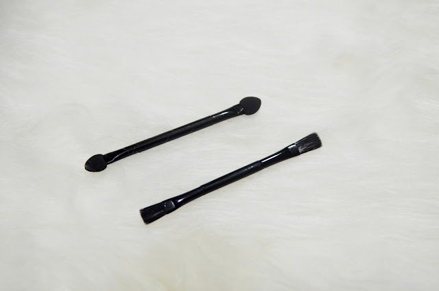 Dari kemasan pastinya ini mirip banget juga sama Urban Decay seri Naked Palette-nya, hanya saja yang BYS punya berbahan plastik berwarna coklat tua yang ringan banget jadi enak buat dibawa-bawa. Nggak ada box bawaan, hanya ada kotak dari plastik bening yang nggak gue foto karena dia memantulkan cahaya hahaha. Ada dua aplikator bawaan, masing-masing di satu sisi berupa spons dan di sisi satunya lagi berupa flat brush. Gue nggak suka aplikatornya, palingan yang bagian sponsnya bisa digunakan untuk pengaplikasian warna shimmer di area inner corner. Bagian cerminnya juga bisa dilipat ke belakang, jadi pas pakai eyeshadow-nya bisa lebih ringkes gitu heheh.