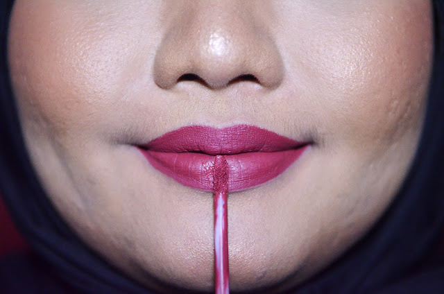 Saat proses ke kering rasanya lengket banget sih, tapi pas udah set lengketnya hilang. Hasil akhirnya soft matte yang cantik banget. Nggak terlalu lightweight menurut gue, soalnya masih berasa aja gitu kalau lagi pakai lipstik. Dia juga termasuk tahan lama gaes warbyasahh. Tapi kalau dipakai sambil makan dan minum tentunya warnanya akan memudar terutama di area dalam bibir. Warnanya juga bakal transfer ke bibir gelas ataupun sedotan yang kalian pake hahaha. Kalau di-reapply dia nggak menggumpal. Tapi tetep gue prefer untuk menghapus dulu lipstik di bibir gue baru dipakai ulang hehehe.