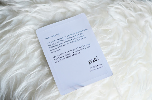 Esqa Cosmetics merupakan merek kecantikan lokal yang didirikan dua wanita yang sudah bersahabat sejak lama bernama Cindy Angelina dan Kezia Toemion. Dengan tagline "glamorously natural" mereka menjual produk-produk dengan formula yang aman sebab they want to enhance your natural beauty. Sek dah cakep bener saya suka! Ingredients dalam produk mereka juga vegan, alias nggak ada kandungan hewaninya. Seneng banget!