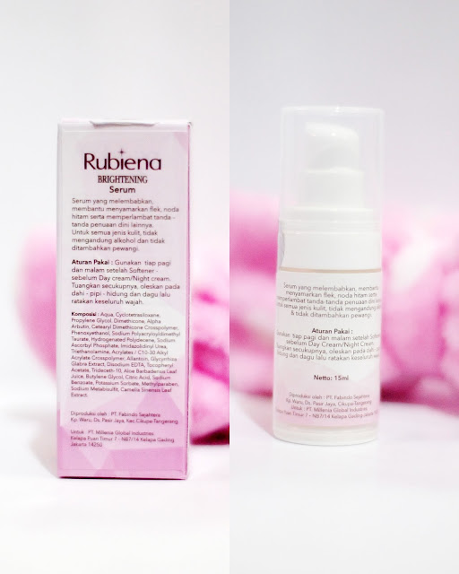 Rubiena merupakan brand lokal yang menyediakan produk-produk perawatan wajah. Saat ini mereka baru memiliki varian Brightening, yaitu perawatan untuk mencerahkan kulit yang kusam. Lumayan lengkap dari pembersih, toner, serum, sampai pelembap. Semua produk Rubiena Beauty sudah terdaftar di BPOM, seneng banget jadi nggak perlu was-was pakainya yayy!