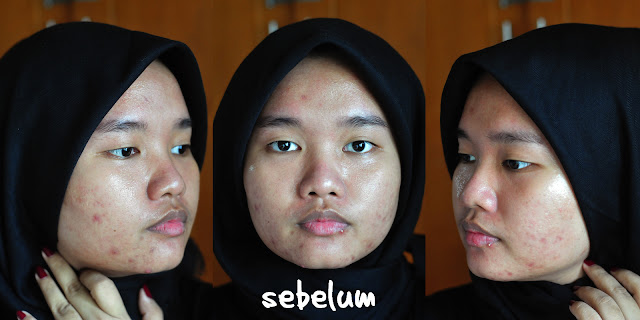 Sebelumnya gue mau jelasin dulu kondisi kulit gue sebelum mengonsumsi H2 Pure Skin ini. Gue memiliki kulit berminyak dan rentan sekali berjerawat. Jerawat yang sering muncul di wajah gue merupakan akibat dari jerawat hormonal. Jadi kalo tiba-tiba tumbuh jerawat besar biasanya karena gue kurang tidur, stres, menstruasi, dan memakan makanan pemicu jerawat. Jerawat kecil/beruntusan muncul apabila nggak cocok sama makeup atau skincare tertentu. Kalau yang terlihat pada foto di atas, bisa dilihat hanya terdapat beberapa bekas jerawat yang kemerahan dan keunguan plus satu jerawat kecil yang ada di sudut pinggiran bibir (iya gue juga nggak tahu itu kenapa jerawatnya di bibir wkwkwk). Oh iya ini juga kondisinya gue sedang datang bulan jadi wajah gue memang agak merah-merah gitu.