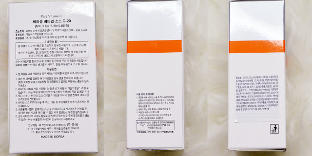 Produk ini disertai kotak berwarna putih dengan aksen berwarna abu-abu serta oranye. Di dalam kotaknya terdapat botol produk dan pipet terpisah. Mungkin supaya lebih steril mengingat Vitamin C merupakan kandungan yang rentan oksidasi bila terkena udara dan temperatur panas. Selain itu botolnya berukuran 30ml berwarna gelap terbuat dari kaca agar produk di dalamnya terlindung dari sinar UV. Walau demikian, harus ditaruh di tempat yang temperaturnya stabil, ya. Bahkan kalau bisa ditaruh di kulkas agar produknya bisa lebih tahan lama.