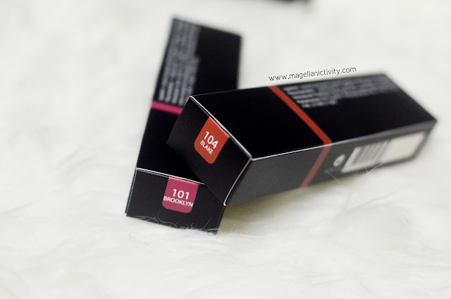 Shade 104 Blake ini adalah yang paling bikin gue excited karena warnanya kelihatan bagus banget walau baru dilihat dari bullet-nya aja. Tapi ternyata bener doong, bagus banget di skin tone gue. Warna nude brown dengan hint oranye, bikin wajah gue kelihatan segar walau pakai warna nude. Bahkan kalo lagi nggak full makeup, wajah gue nggak kelihatan pucat sama sekali. Kalau disuruh pilih antara Brooklyn dan Blake, tentunya gue akan pilih Blake hehehe.Tapii sedihnya nihh, lipstik gue yang warna Blake ini bullet-nya udah copot dong sejak pertama kali pakai 😊 gatau kenapa, mungkin gara-gara produknya nggak glides on smoothly alias agak seret gitu, dan gue pake bagian pinggiran bullet-nya, bukan bagian yang runcing, yaudah deh copot bullet-nya😂 Kebiasaan gue juga sih senengnya menjaga lipstik tetap pointy gitu bagian ujungnya, makanya sukanya pake bagian pinggirannya. Makanya sejak saat itu pas nyobain shade 101 Brooklyn gue pakenya di bagian yang runcingnya aja demi menjaga gincu tetap rapi hahaha.