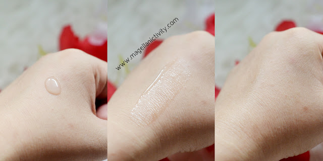 Teksturnya cair, literally seperti air biasa. Unik sih, soalnya biasanya exfoliating toner yang pernah gue coba pasti agak lengket dan kental. Kalo ini nggak lengket dan cair banget. Airnya bening tanpa warna, dan aromanya seperti obat.