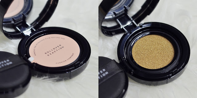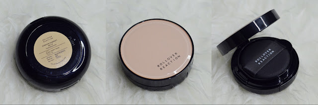 Rollover Reaction Cushion Compact Tinted Moisturizer ini adalah salah satu kemasan cushion lokal yang paling gue suka. Hadir dengan kotak berwarna mewakili shade yang ada di dalam produknya. Di bagian belakang kotaknya ada penjelasan tentang produknya, cara pakai, sampai ingredients-nya. Lalu untuk kemasan produknya sendiri seperti cushion pada umumnya saja. Terbuat dari plastik yang kokoh dengan paduan warna nude dan warna hitam. Awalnya gue pikir warna nude-nya itu mewakili warna isi produknya, ternyata enggak hehe. Ukurannya sih lumayan bulky alias gendut dan terasa berat kalau dipegang, memberi kesan mewah dan elegan.