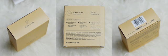 Sampai tulisan review ini ditulis, koleksi warna dari Rollover Reaction Cushion Compact Tinted Moisturizer ini ada tiga warna. Yaitu 101 Custard Tart (fair skin tone with neutral undertone), 102 Honey Toast (medium skin tone with yellow undertone), dan 103 Milk Tea (deep skin tone with yellow undertone). Nama shade-nya mewakili nama makanan uwu banget. Sayangnya, menurut gue koleksi shade-nya masih sangat kurang. Awalnya gue pikir ini udah oke banget soalnya gue melihat swatches-nya yang terlihat shade 103 Milk Tea itu akan cocok di warna kulit sawo matang. Ternyata nggak, itu lebih cocok untuk warna kulit medium-tan. Padahal di deskripsinya bisa untuk deep skin tone.