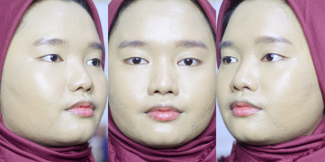 Seperti yang sudah gue bilang sebelumnya, gue memilih shade 102 Honey Toast karena gue merasa warnanya bakalan cocok di kulit gue. Walau masih ragu bangettt tapi yaudahlah aku pasrah. Kalau terlalu terang paling gue jual lagi. Well, ternyata, untuk undertone-nya sih pas banget di kulit gue karena dia olive undertone. Iya, di deskripsi katanya shade ini tuh yellow undertone, tapi kalau gue lihat dengan saksama sih dia lebih ke arah olive undertone hueheh. Nah, sedangkan untuk tone-nya masih sedikit lebih terang dari warna kulit gue. Tapi masih bisa banget diakalin dengan memakai bronzer. Di foto mungkin kelihatan putih banget, tapi itu sebenarnya white cast akibat kandungan SPF-nya yang cukup tinggi. Di real life sih kelihatan fine aja, masih masuk banget di warna kulit gue. Jadi gue kurang menyarankan pemakaian produk ini di malam hari, apalagi kalau mau foto-foto pakai flash.