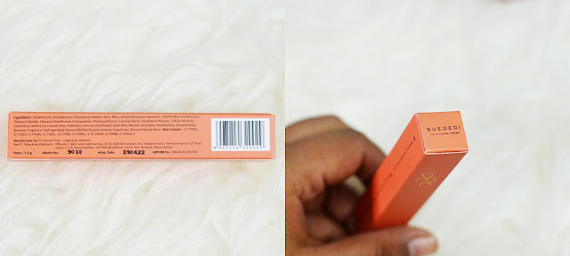 Tapi jangan salah, walau demikian formula SUEDED! Lip & Cheek Cream ini merupakan formula lipstik favorit gue. Karena dia nggak bikin bibir gue makin kering sama sekali, malah nyaman banget dipakainya. Nggak bikin bibir terasa berkerut ataupun tebal, jadi ringan banget deh dipakainya. Hasil akhirnya soft velvet matte which I loovee, nggak bikin bibir kelihatan kering kerontang dehidrasi gitu wakakak. Wanginya enak seperti kue dan nggak terlalu strong.